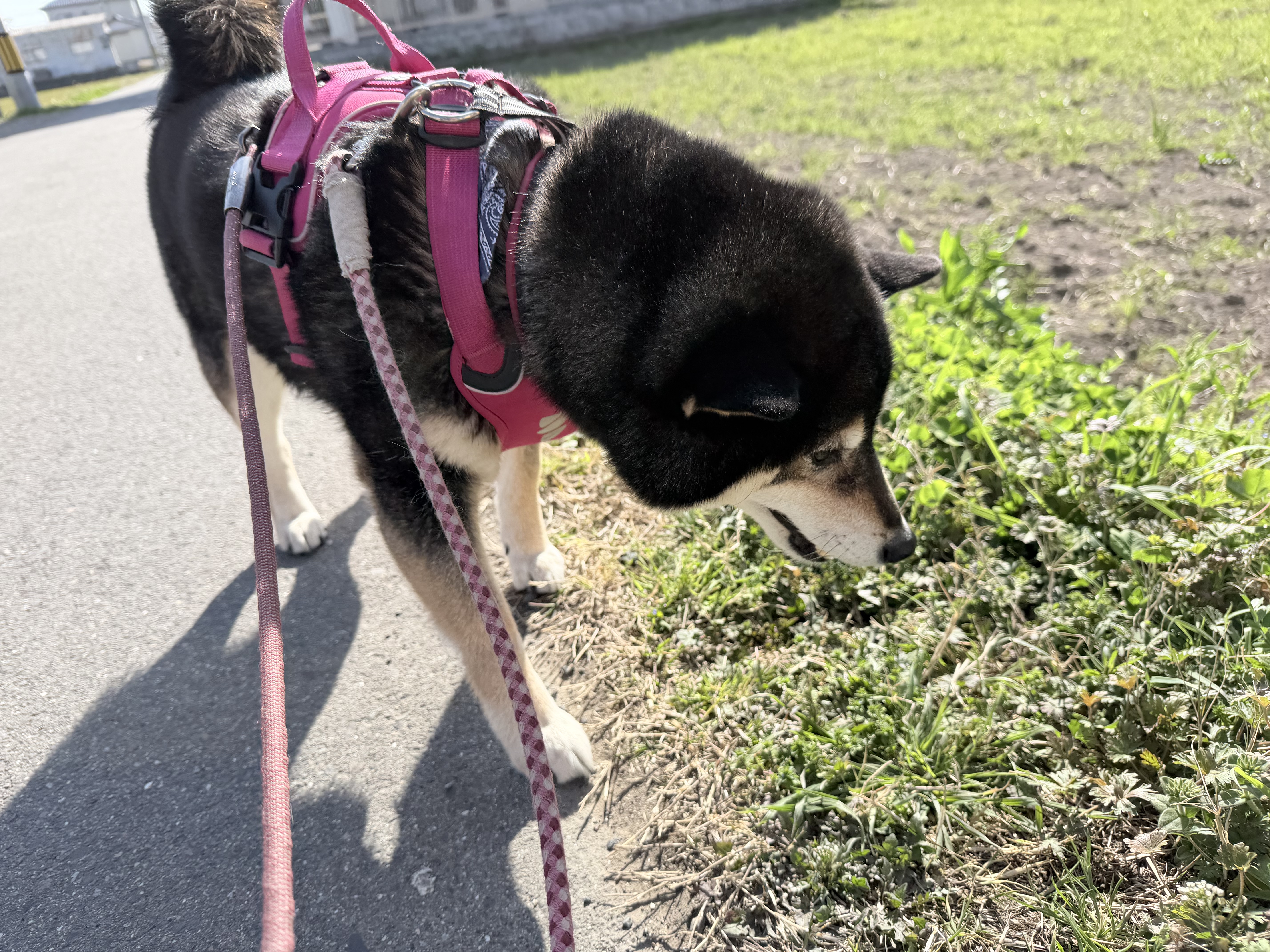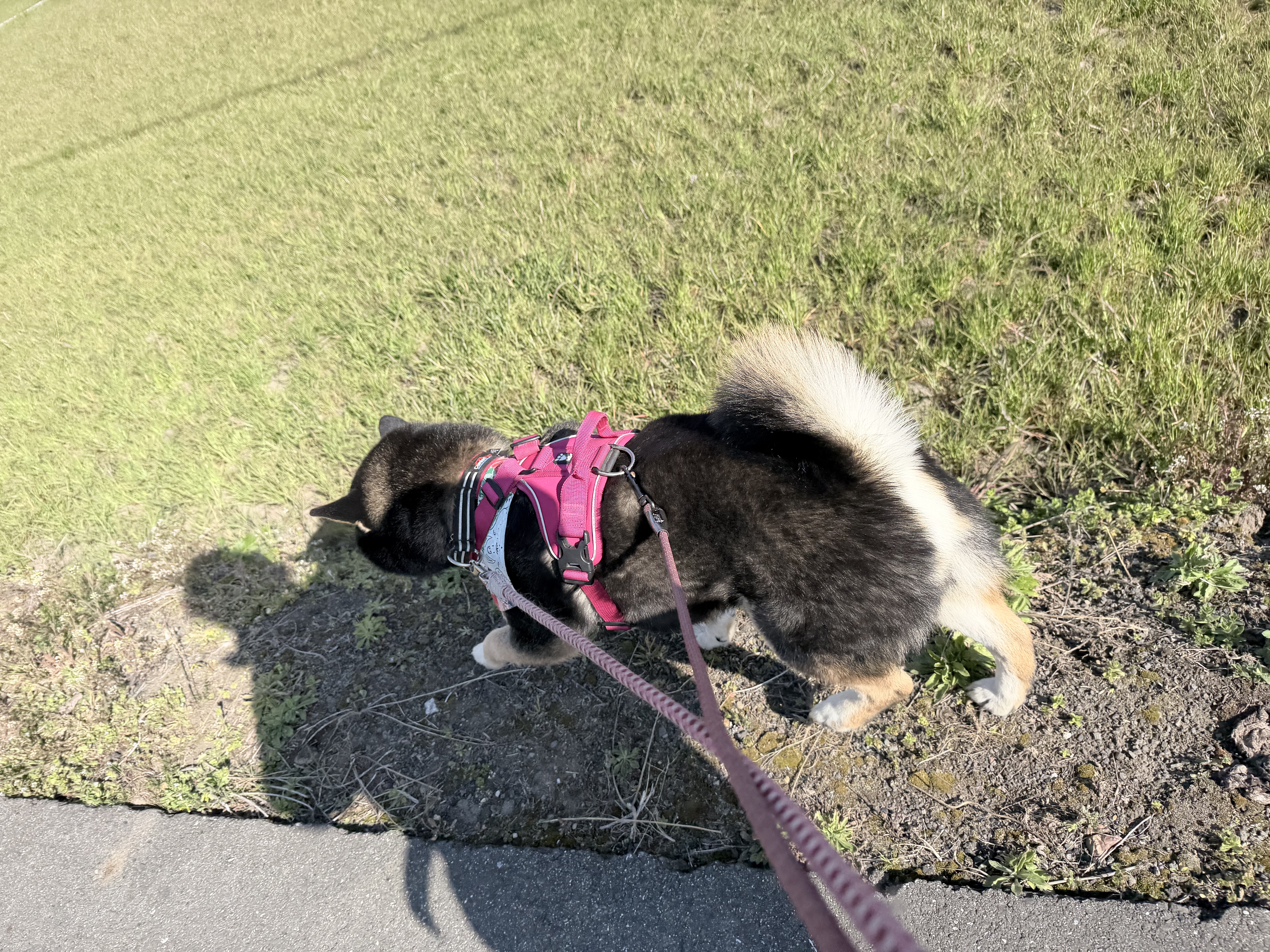 こんにちは。お泊り犬通信です。めっちゃ快晴でいい天気です~。お散歩気持ちいい♪でも、紫外線には要注意です・・・先週、お外レッスンが続いた島田。気持ちいい天気が続いたので帽子を被らずにいたら、日焼けしましたね・・・日焼け止め塗ってましたけどね・・・くちびる、ヒリヒリしましたね・・・春の紫外線、なめちゃいかん!ですね。さて本日のお泊りは柴犬のマロちゃん。お散歩大好きなマロちゃん良いお顔♪トイレをどこでしようかな~今日も元気に過ごしています♪